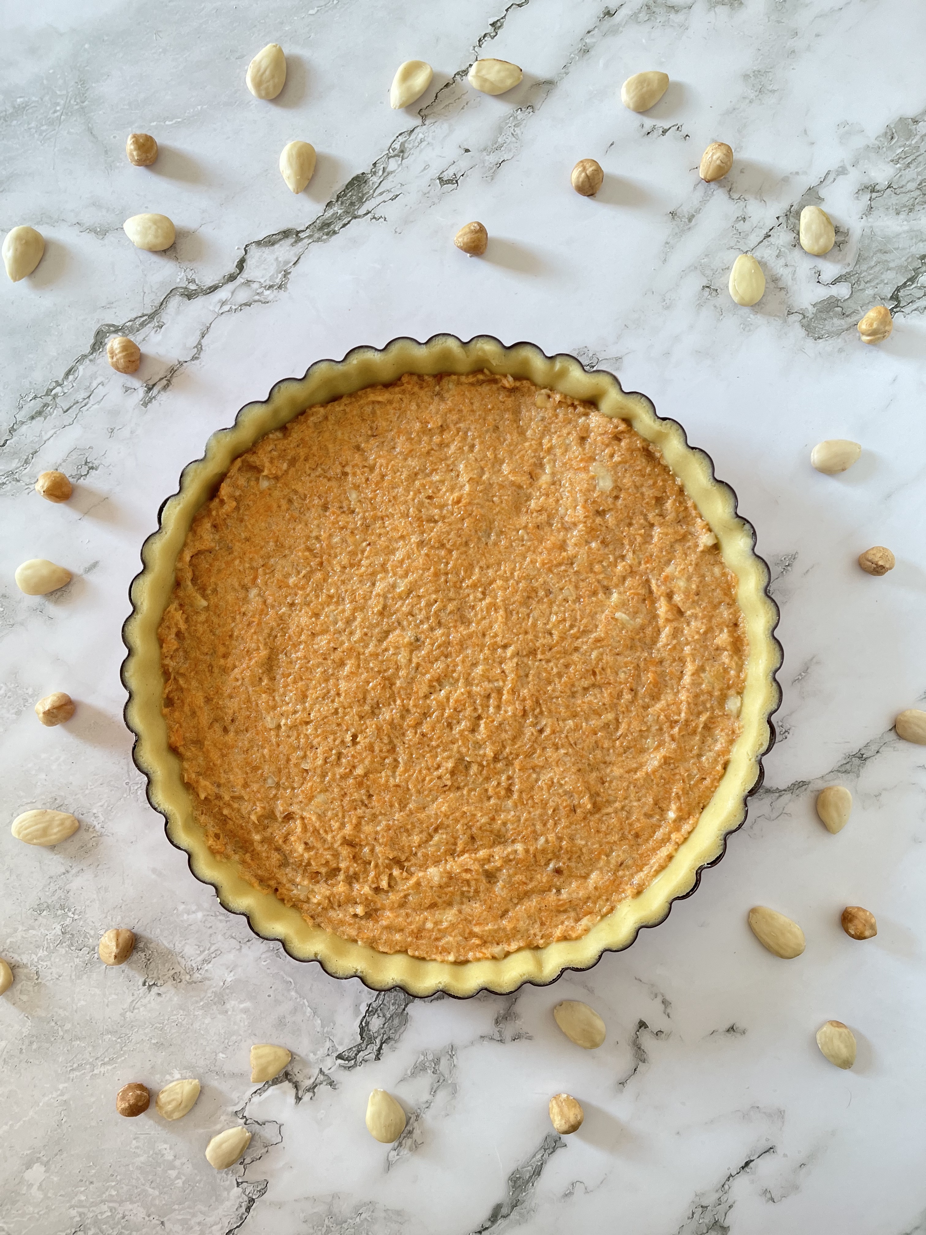 - Riempite la teglia foderata di pasta frolla con il ripieno di carote