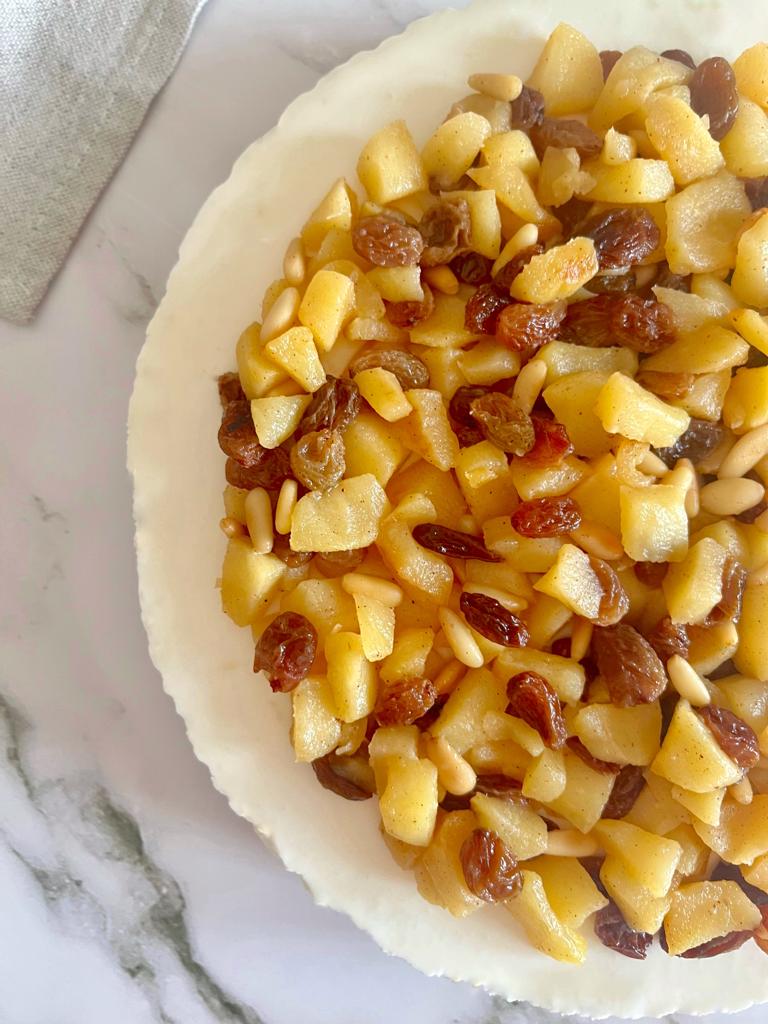 Ho quindi deciso di preparare una Strudel Cheescake, ispirandomi a una ricetta di Valentina Previdi, alla quale ho apportato qualche modifica. Questo dolce (che è anche senza cottura!) ha una base di biscotti Lotus e un ripieno di panna, mascarpone e ricotta, sormontato da mele spadellate con uvetta e pinoli, classica farcia dello strudel🤩.