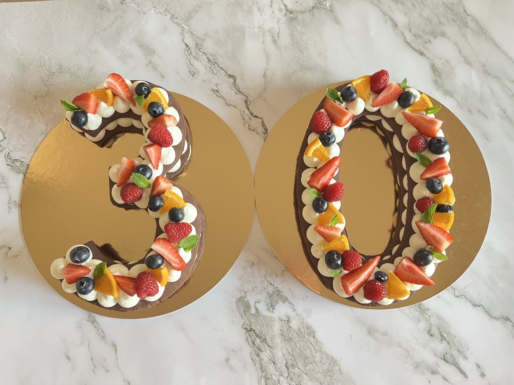- Ripetete la stessa operazione per entrambi i numeri e terminate la decorazione con frutti di bosco, fettine di arancia e foglie di menta (o come più preferite!!!)