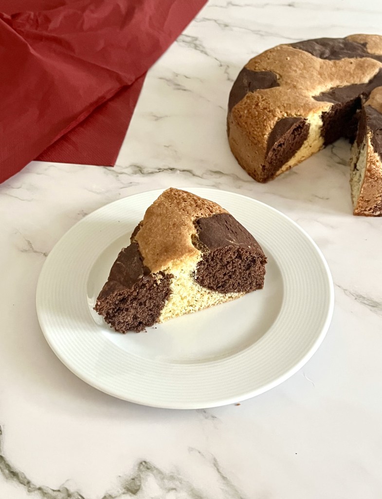Preparati i due impasti (quello bianco e quello nero), arriva poi la parte cruciale: i composti vanno inseriti nella tortiera per creare il contrasto tra le due preparazioni. Ma attenzione: se pensate di mischiarli, per ottenere un effetto marmorizzato, sappiate che non otterrete la vera torta bianca e nera di nonna Pina, ma una semplice torta vaniglia e cioccolato 🤭! Su questo punto il mio compagno è stato irremovibile quando ho consigliato di amalgamare gli impasti: “mia nonna la faceva così”! Io vi ho avvisati 😉!