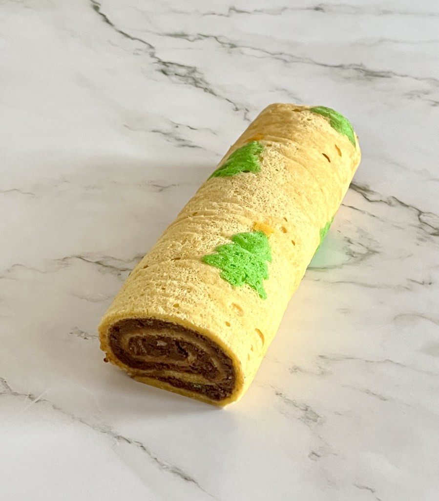 Ho deciso di preparare un rotolo natalizio decorato con alberelli di natale, ripieno di una buonissima crema che ricorda i Ferrero Rocher, insomma un dolce goloso e semplicissimo da preparare. La parte più lunga è la decorazione; dovrete infatti disegnare degli alberelli su un foglio di carta forno e riempire la sagoma con un impasto a base di burro, farina, zucchero e albume. Questo passaggio richiede un pò di manualità e precisione, ma vale la pena perderci un pò di tempo! La soddisfazione di vedere gli alberelli stampati sul vostro rotolo, ripagherà la fatica.
