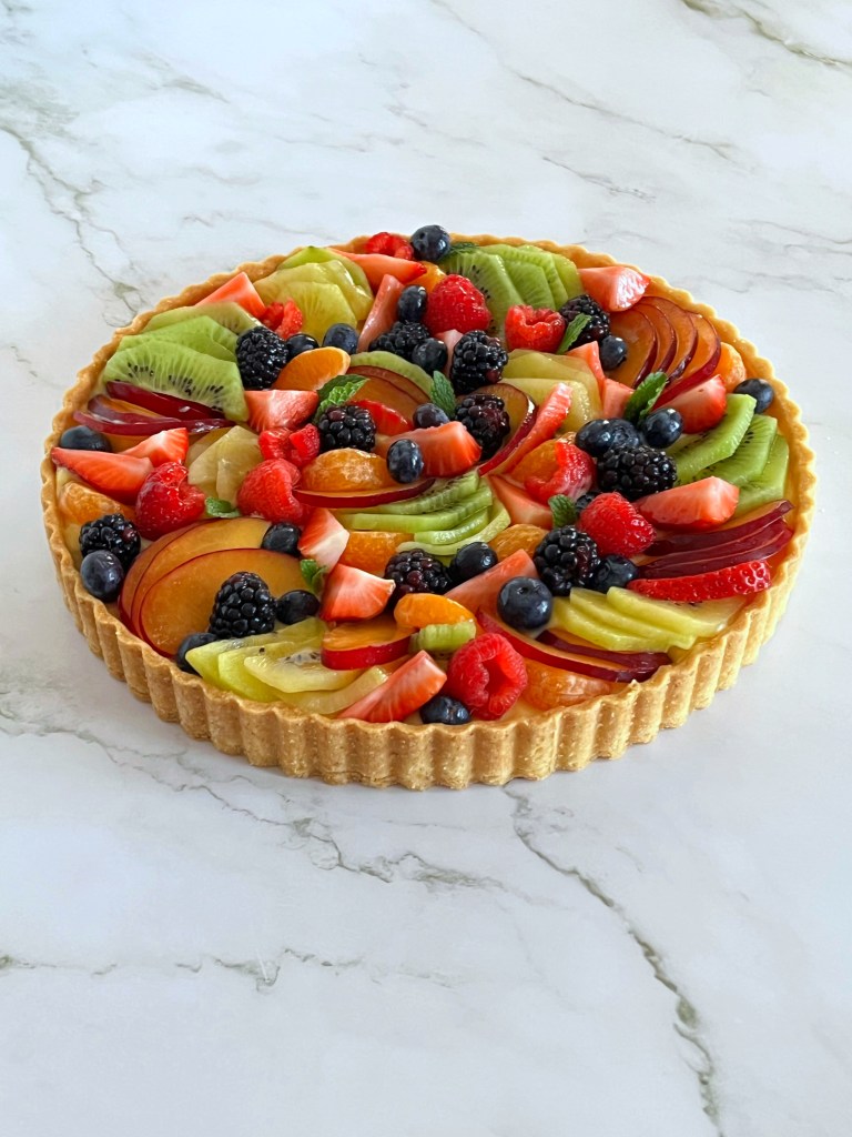Questa crostata si compone di un friabilissimo guscio di pasta frolla (steso molto sottile!), ripieno di una corposa crema pasticcera, sormontata da frutta fresca. Come vi ho detto, è davvero molto semplice da preparare ma è stato un successo!! Il segreto è utilizzare la ricetta della crema pasticcera di LuCake, vi assicuro che è una delle creme più buone che io abbia mai mangiato: corposa, vellutata e leggera allo stesso tempo (ho l’acquolina mentre sto scrivendo questo articolo🤭).