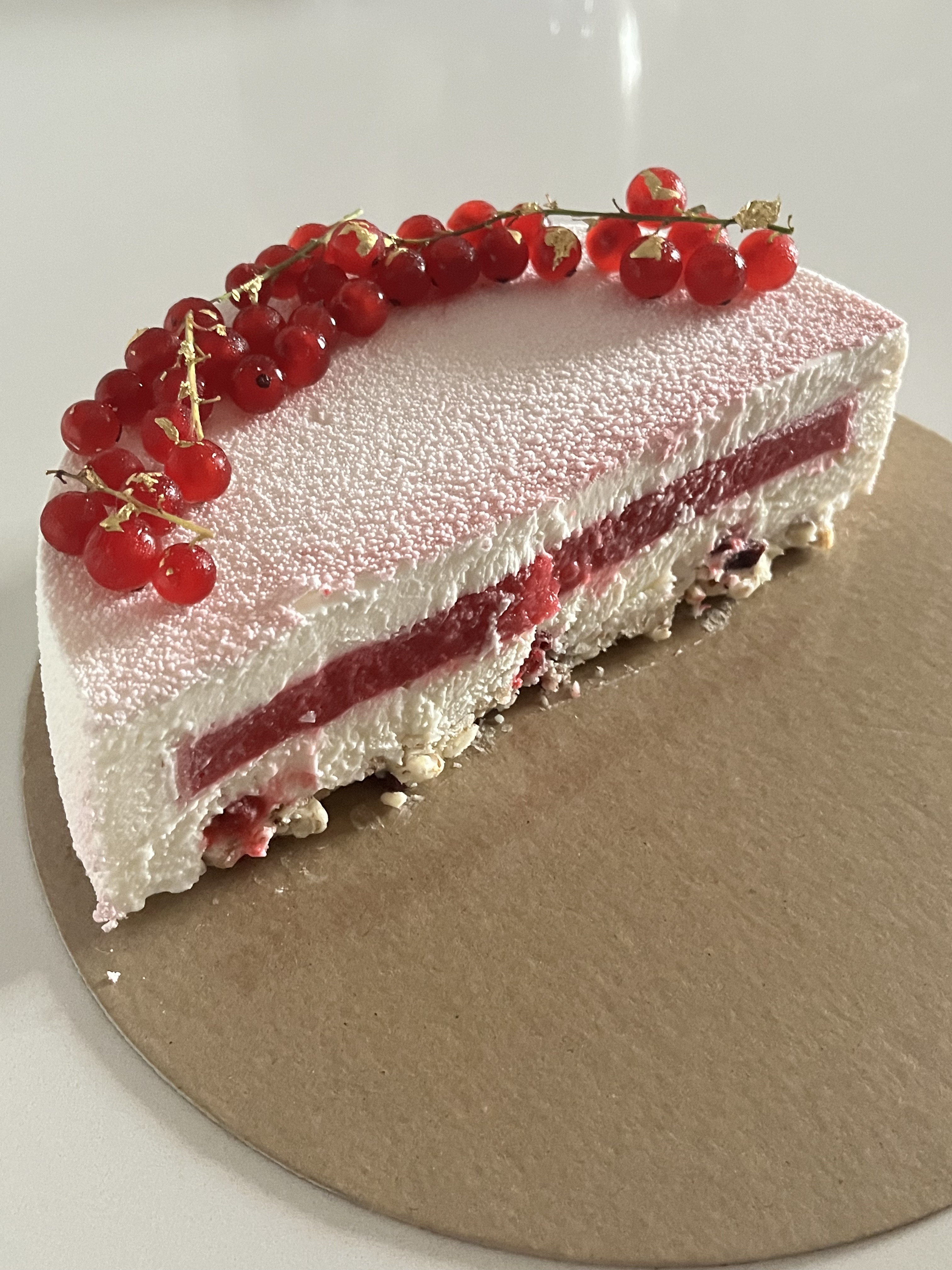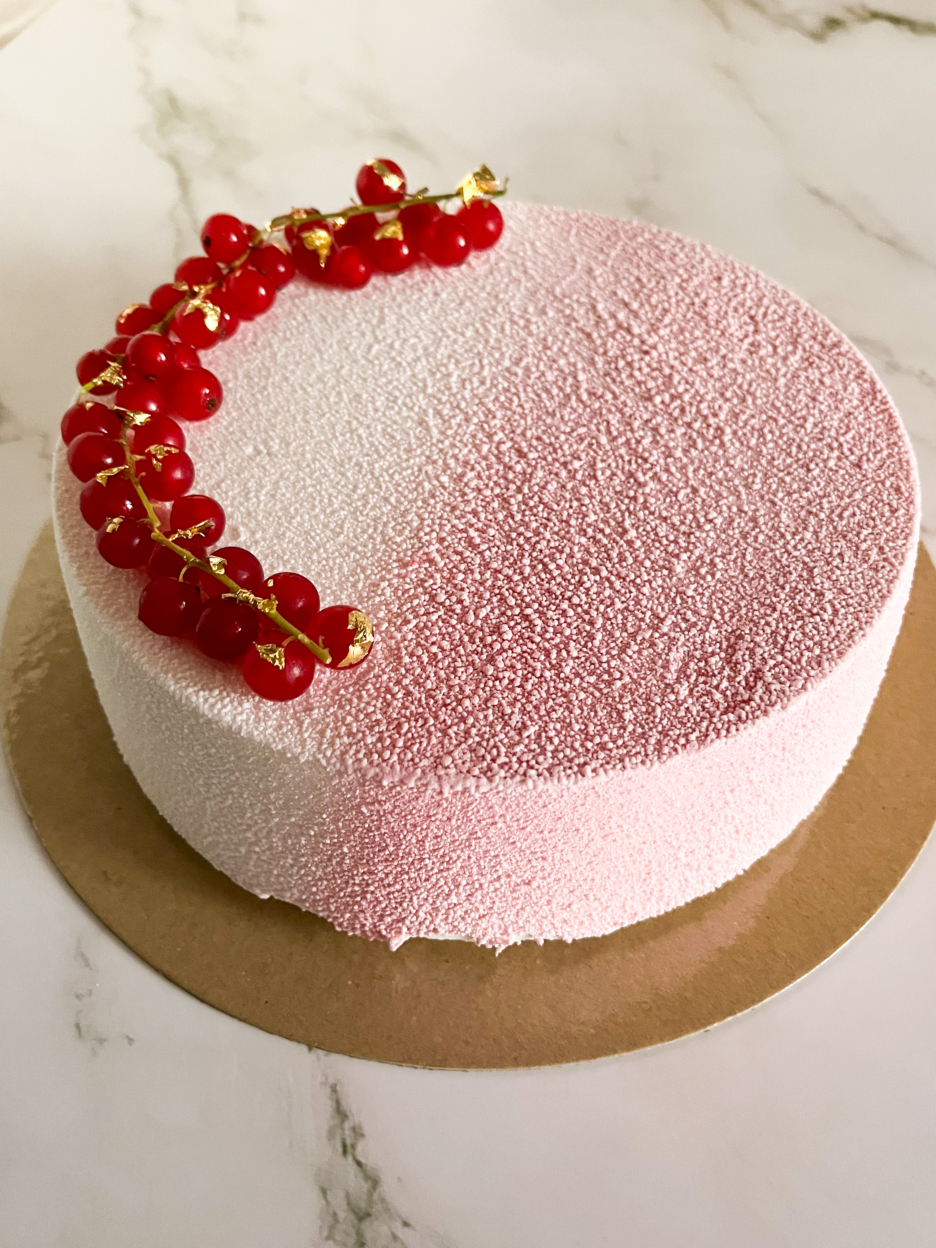 - Completate la decorazione con ribes fresco e foglie oro alimentari.