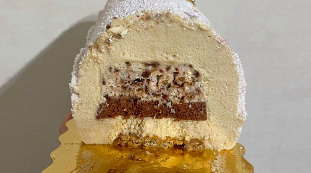 Questo buche è composto da una bavarese alla nocciola, da una bavarese ai wafer, da una mousse alla crema Novi e da uno streusel ricomposto alla nocciola. Inutile dire che ha conquistato tutti, come si può resistere a questi gusti🤩?
