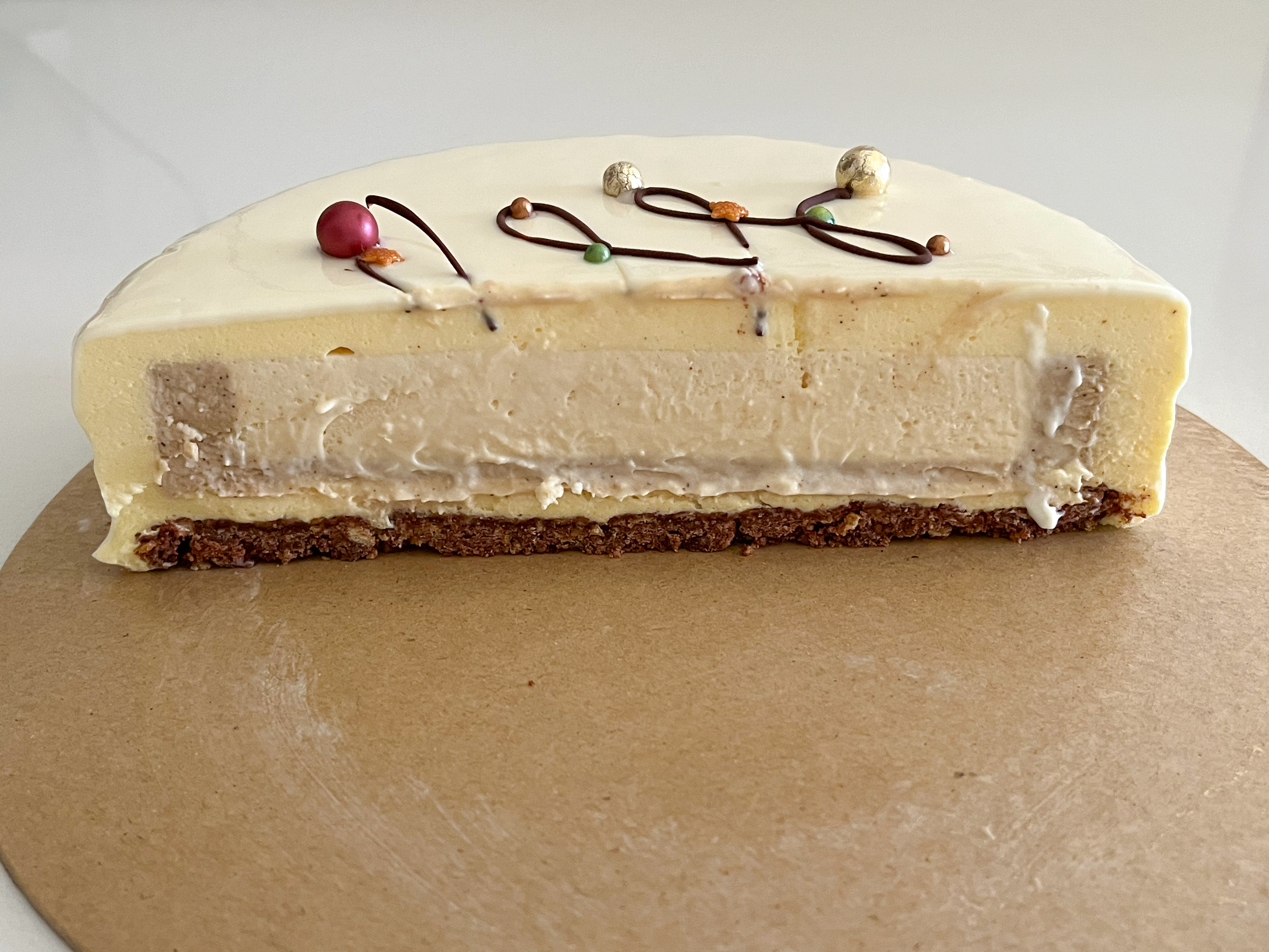 Questa torta si compone di una mousse leggera al Baileys, una ganache al caffè, da una bavarese vaniglia e Baileys e da uno strato croccante composto da digestive e cioccolato. Ho completato la decorazione della torta con una glassa a specchio bianca e con un disegno in cioccolato in perfetto mood Natalizio!