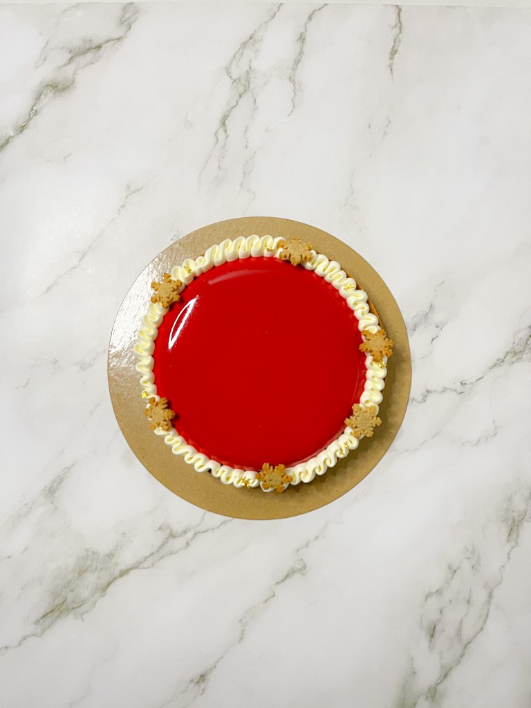 - Posizionatela su una griglia o su una ciotola capovolta e versate la glassa a specchio, partendo dal centro verso l’esterno.