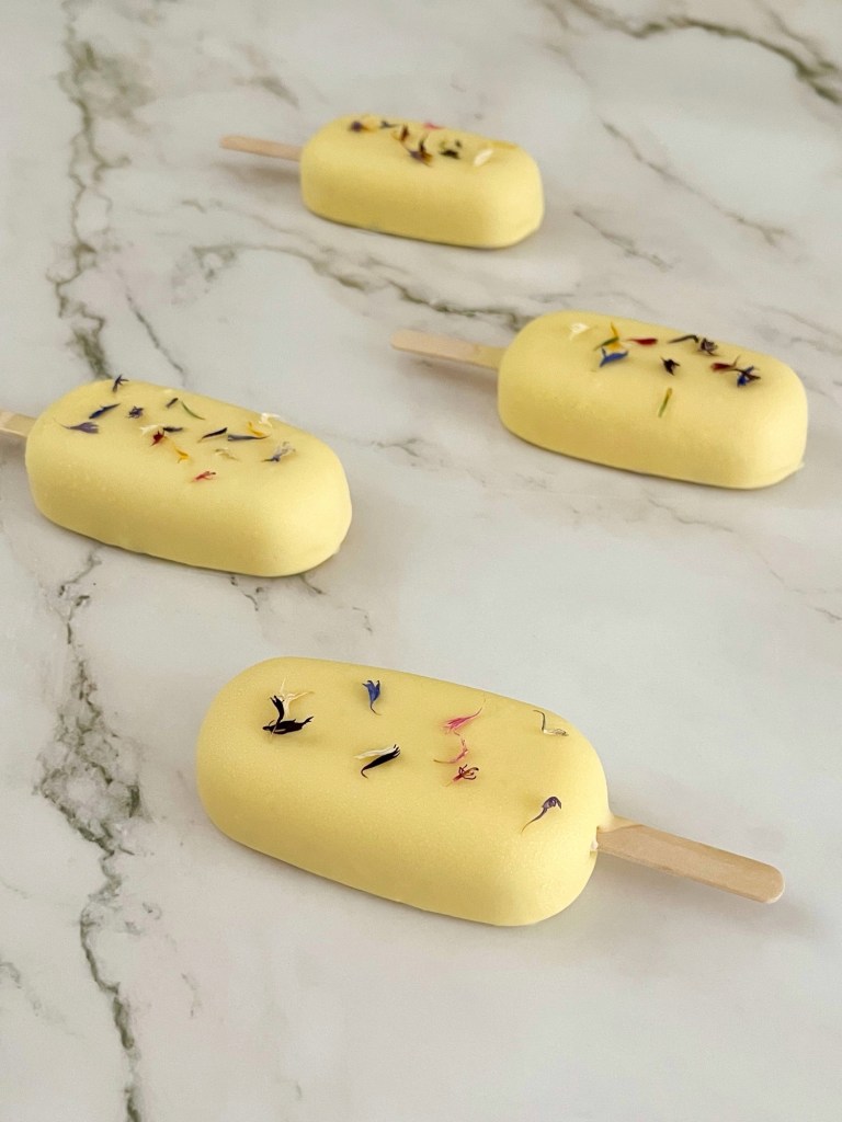 - Una volta glassati, completate con la decorazione che più vi piace. Io ho optato per dei fiori eduli