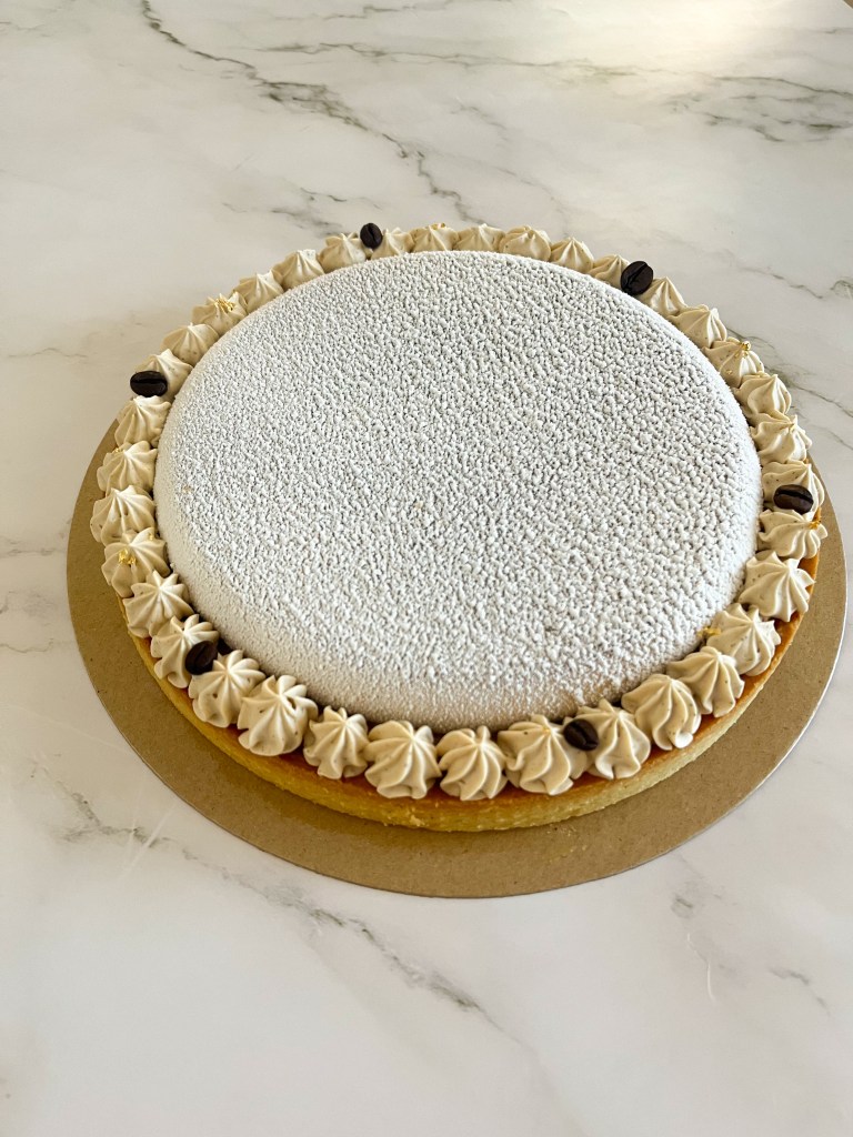 - Completate la decorazione con chicchi di caffè lungo tutta la circonferenza della crostata.