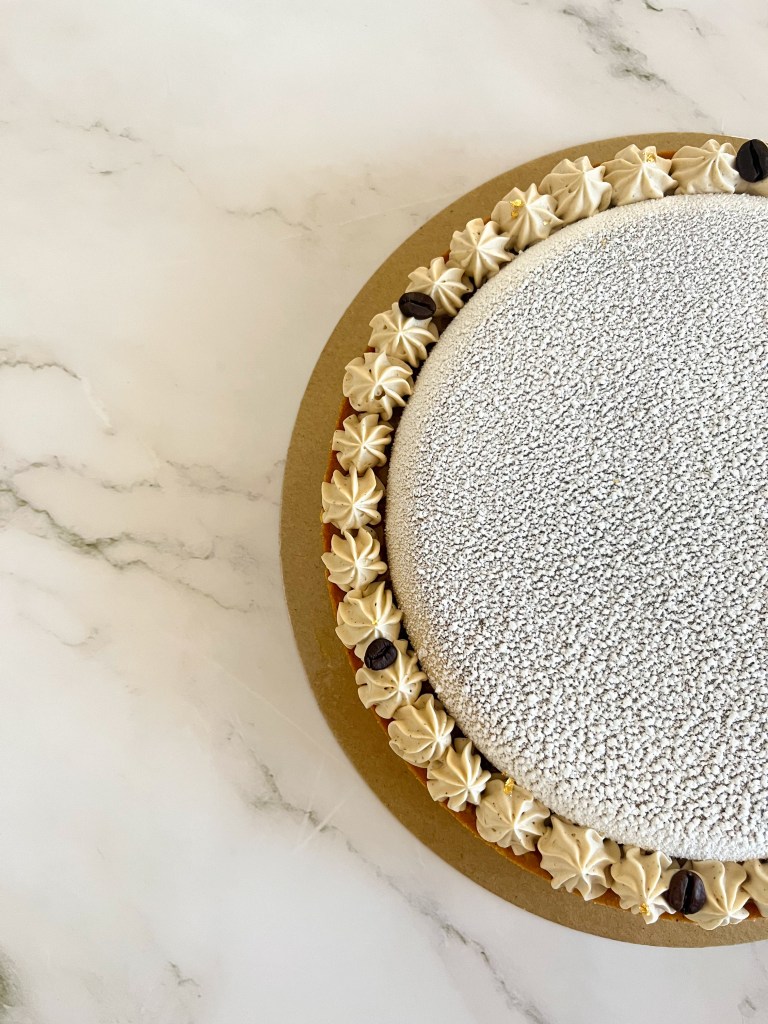 - Versate i 2/3 della ganache al caffè nello stampo in silicone del Kit Tarte Ring Round di Silikomart (o in qualsiasi stampo di 17 cm di diametro) e mettetelo a riposare nel freezer per almeno 12 ore.