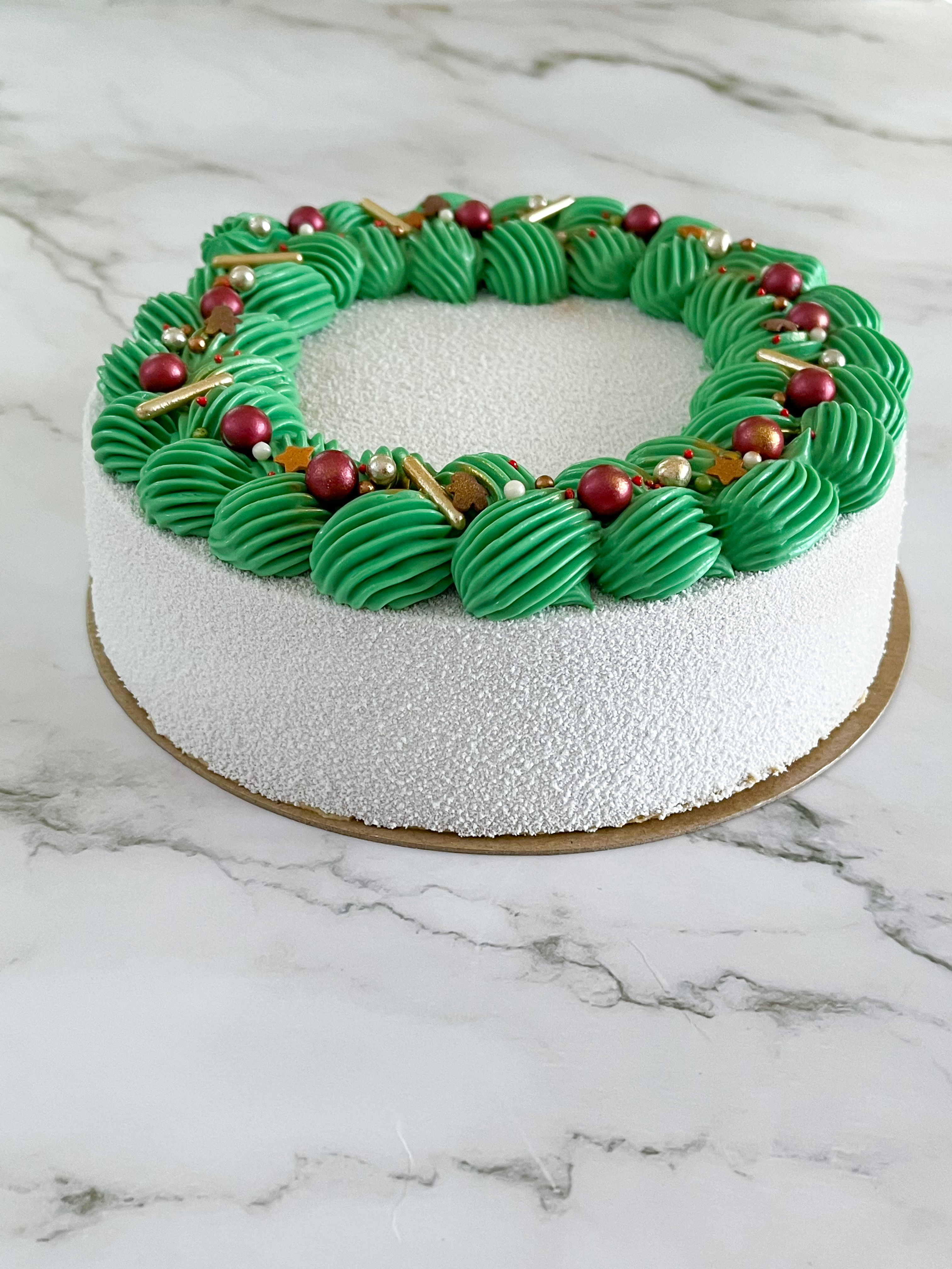 Per decorazione ho optato per uno spray effetto velluto bianco e una ganache alla vaniglia colorata con del colorante alimentare verde. Ovviamente non potevano mancare degli sprinkles per completare questo dolce 😏