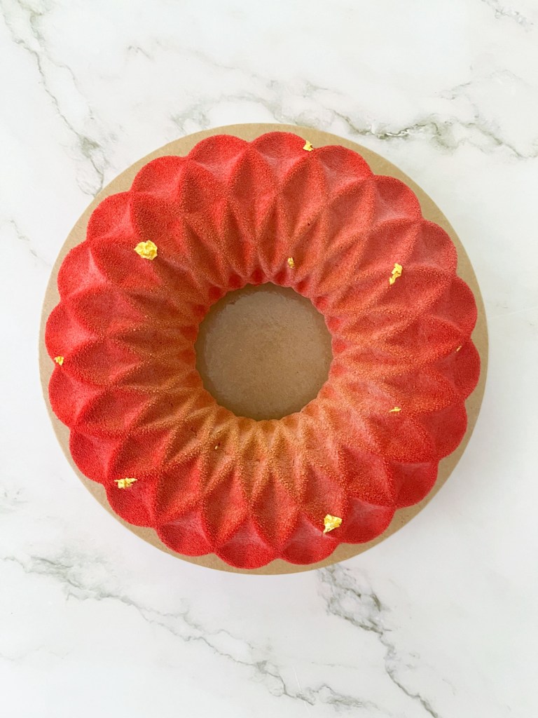- Create una sfumatura con lo spray oro nella parte centrale del dolce.