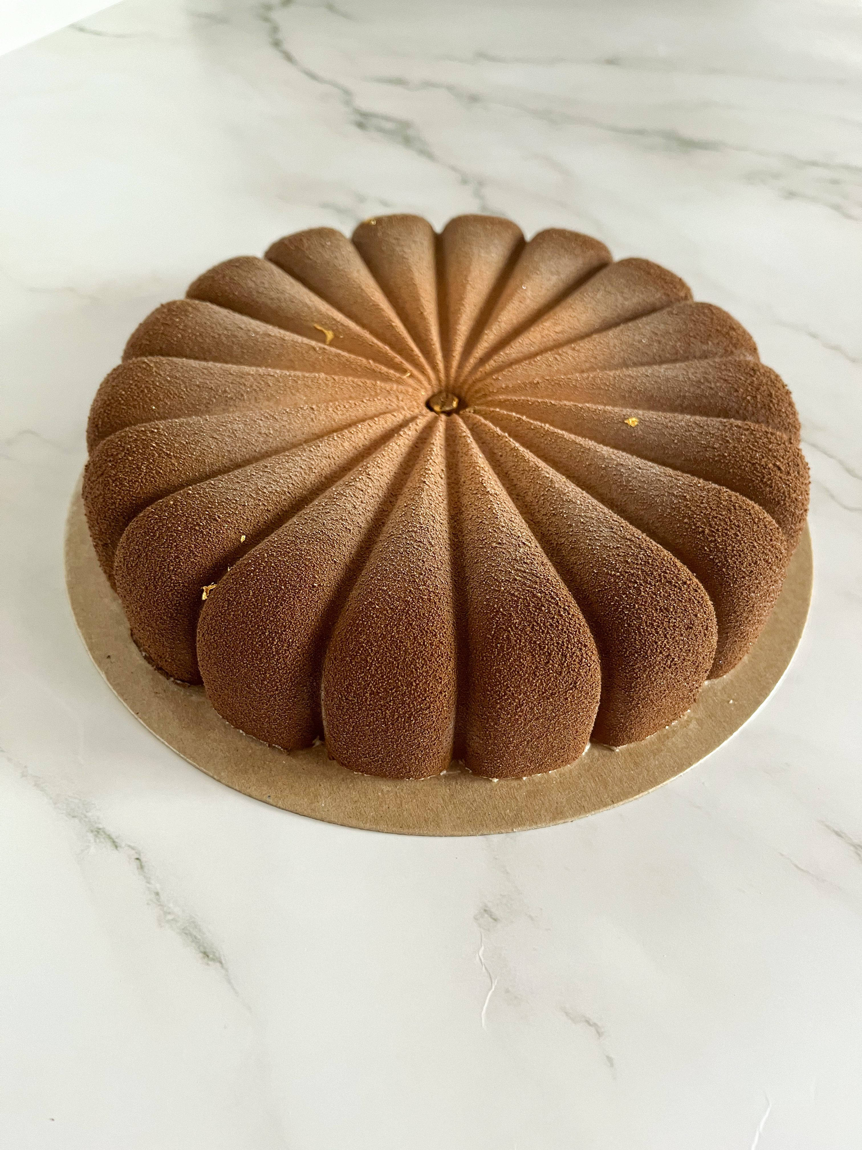 - Versate la mousse al cioccolato gold nello stampo Maggie Silikomart o in uno stampo in silicone di 21 cm di diametro.