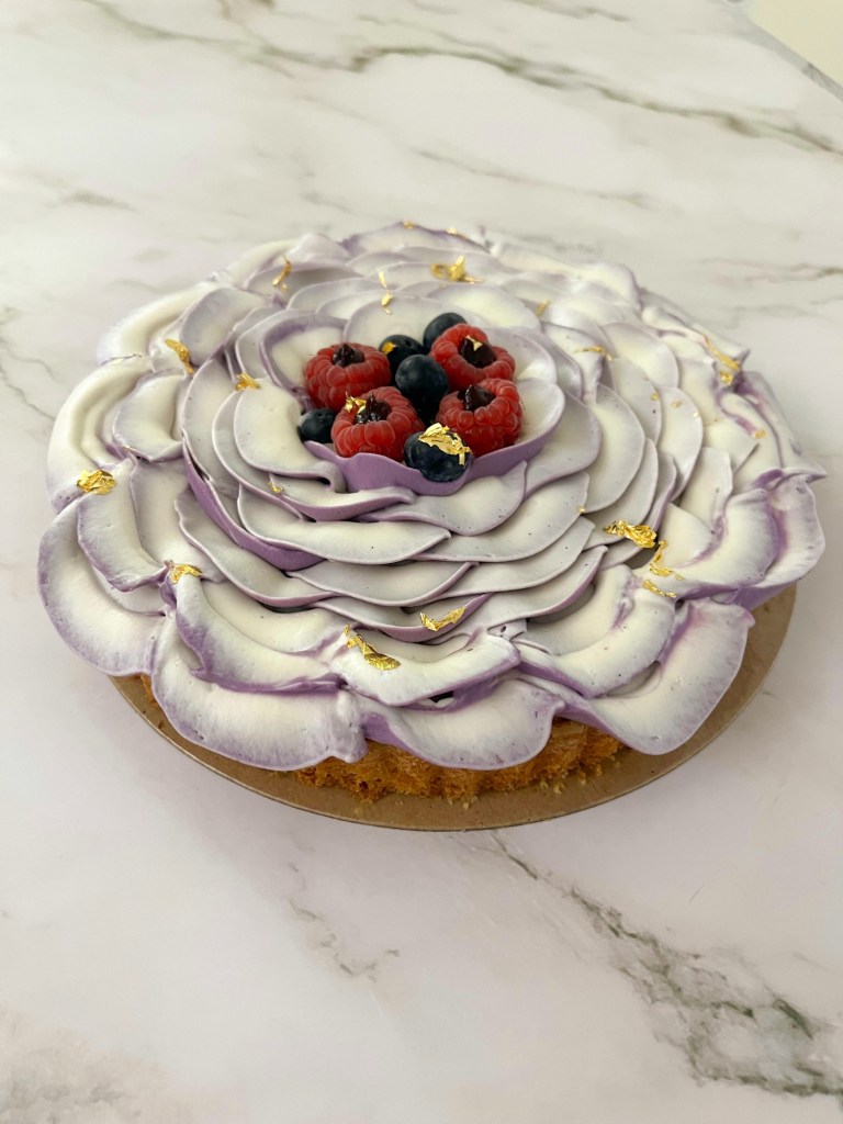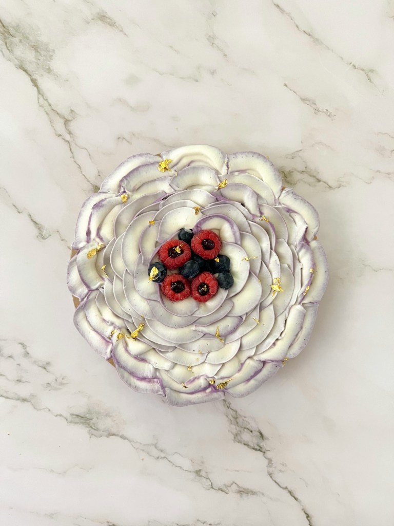 Per rendere speciale questa torta, ho deciso di realizzare questa decorazione a fiore colorando metà della ganache con una punta di colorante alimentare viola, così da creare più movimento☺️