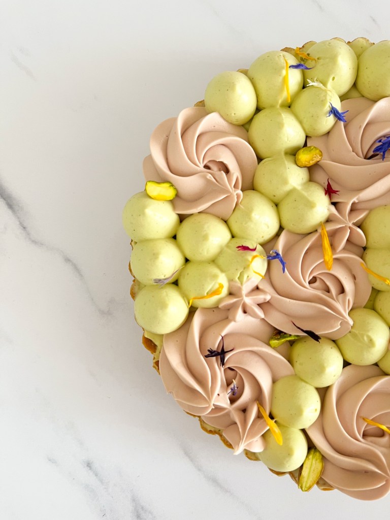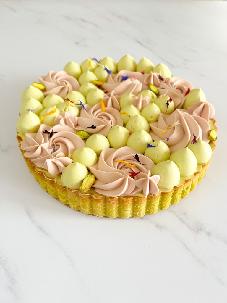Giorno II – preparazione della crema frangipane al pistacchio, cottura della frolla e decorazione del dolce