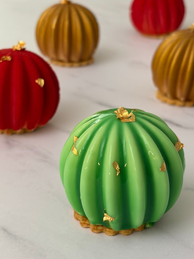 Per realizzare queste monoporzioni ho utilizzato una mousse leggera al Baileys come inserto, una bavarese al miele e un delizioso pain d’epices.